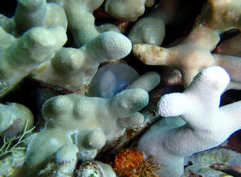 でっかいハマサンゴにスカシがいつの間にかむれていて