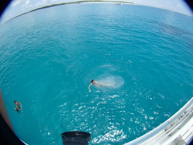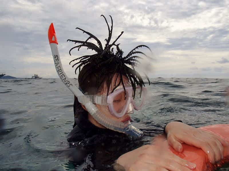 海が青くて太陽ピーカンだとみんなお昼休みはシュノーケルしたり、