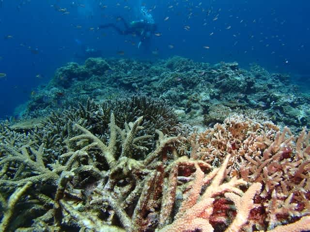 新しいポイントですよ(^_^)/水深3mからサンゴが沖に張り出して