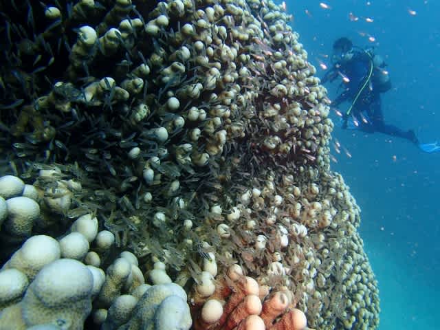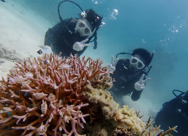 浅場の大きなテーブル珊瑚や枝珊瑚は見応えがありました♪