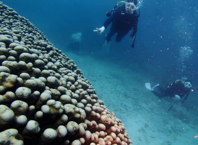 一本目は、竹富島の島影で大きなジャガイモ珊瑚を見たり、