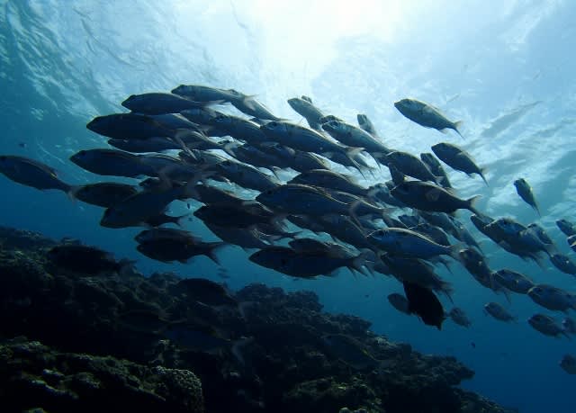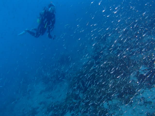 黄色いおしりのノコギリダイx100匹とも一緒に泳いできました