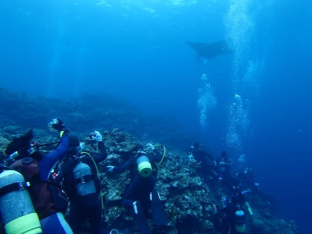 ダイバーの泡の向こうには みんなが夢見たマンタがどどん!!