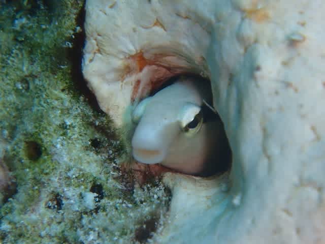 岩の隙間に隠れていたコクテンフグちゃん。。