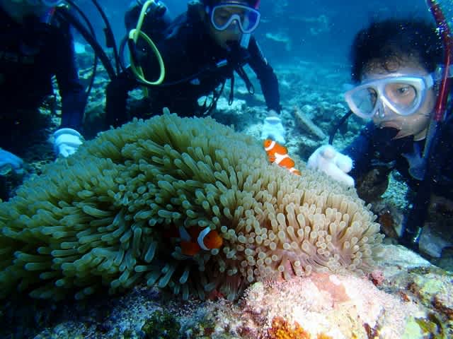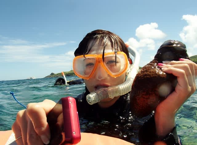 スノーケル中はグルクンのちびちゃんたちがわさわさっ))