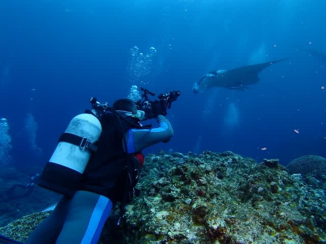 去年は、久米島で家族で潜ってきたそうで、今年は石垣島でマンタに会いに???