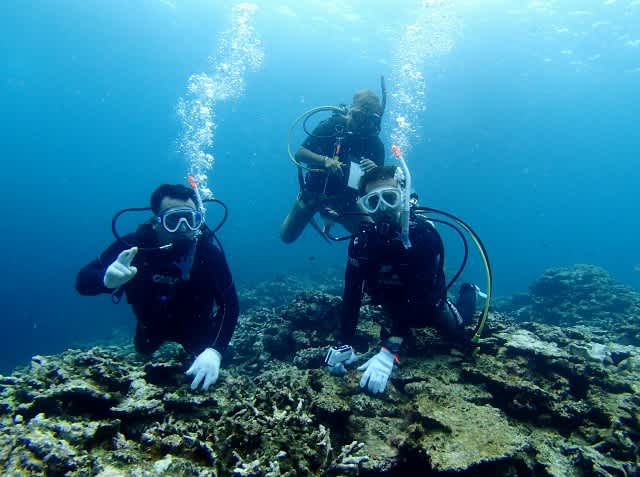 コンディション:南南西の風 気温33℃ 水温29℃ 透明度15~20m