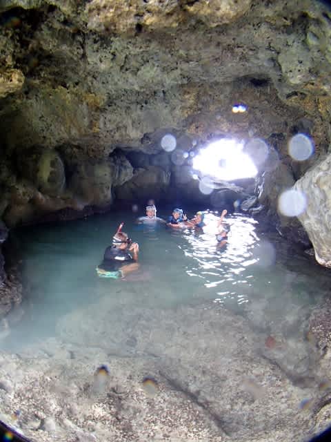 お昼は極極々!!浅瀬に停泊 秘密の青の洞窟プールで