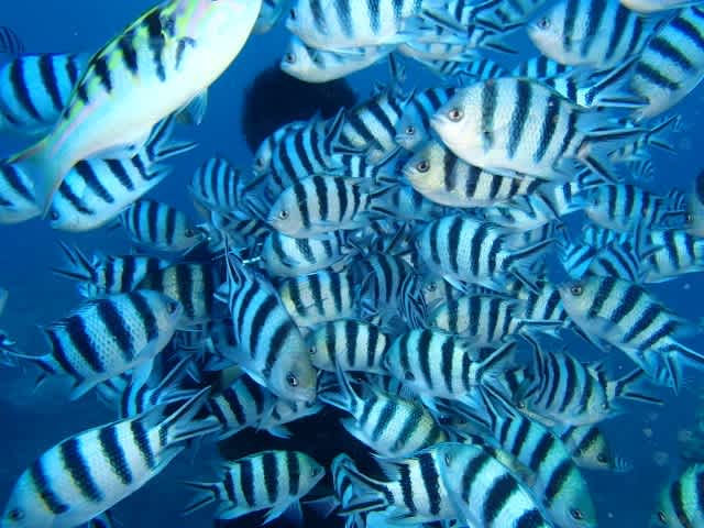 水中入ってすぐにロクセンスズメダイがわさわさ♪