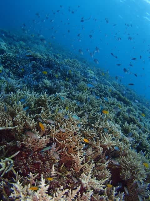 サンゴの絨毯の上をあっちへこっちへお散歩です~)^o^(