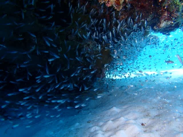 一本目は、砂地でまったりスカシテンジクダイの群れに癒されて来ました。