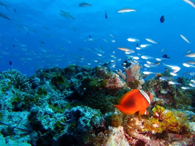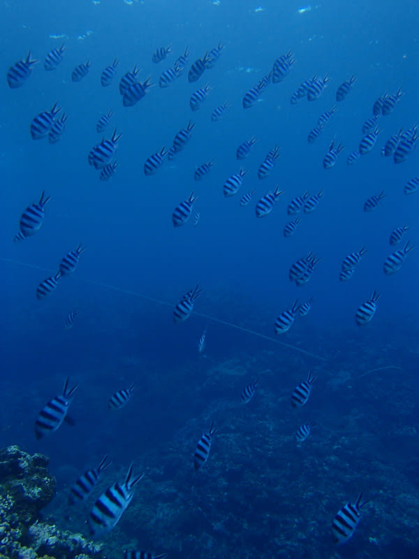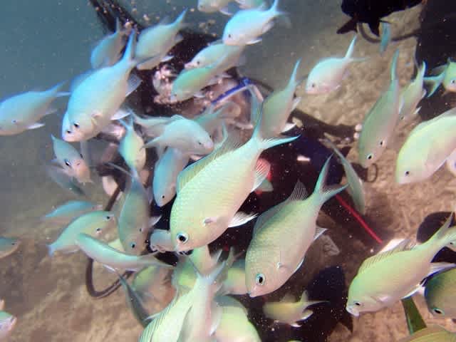 スズメダイやその上にグルクンなどがどっちゃりしていて