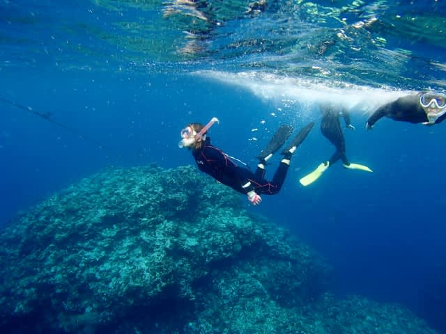 との情報がありましたが、透明度もよくて水温も26℃くらいでしたので