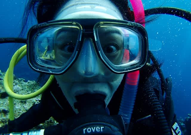 出来そうな場所で潜ってきましたけど、ゲストの方が遠くの方にサメを一匹
