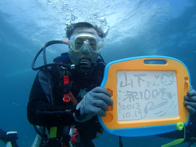 ここで山下さんが100本の記念ダイブ!!!!!