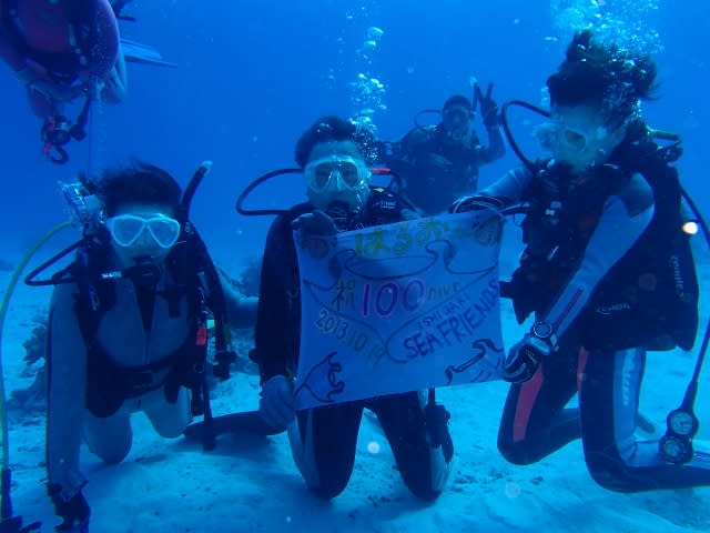 一本目にリピーターのヤマシタさん祝100本記念ダイブのお祝いもしっかり