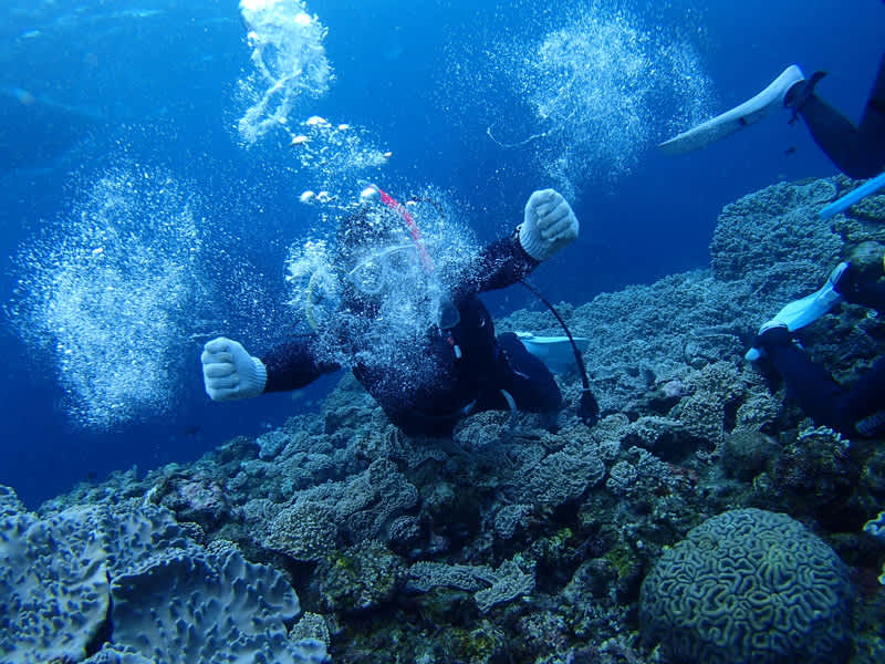 スノーケルが一番沢山のサンゴを眺められちゃいますね