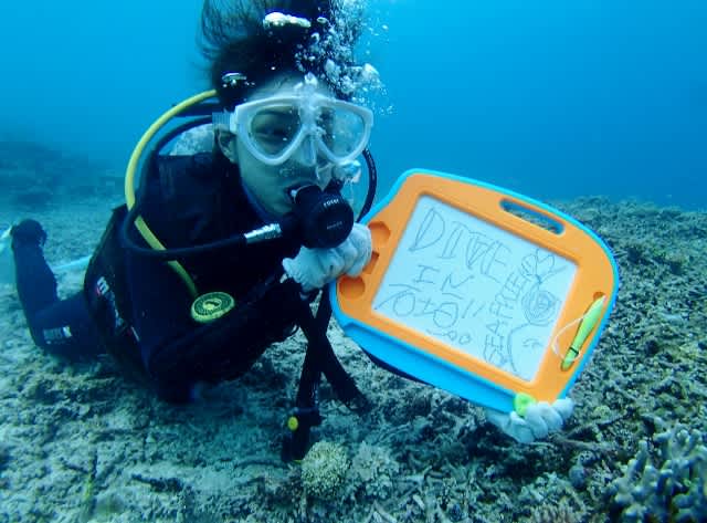 初のダイビング目の前に広がるサンゴサンゴサカナサカナサンゴ >゜))))彡