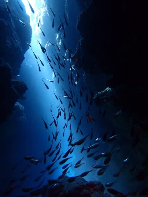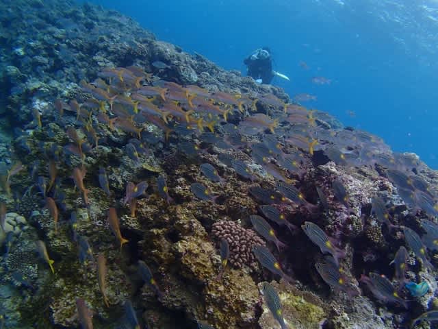ラストは、地形ダイブです♪壁沿いには、グルクンの群れ、