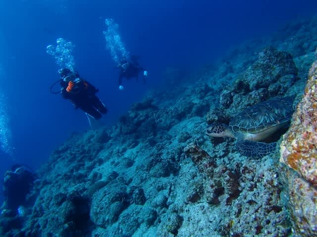 コンディション:北東の風 気温20℃ 水温20~22℃ 透明度15~18m