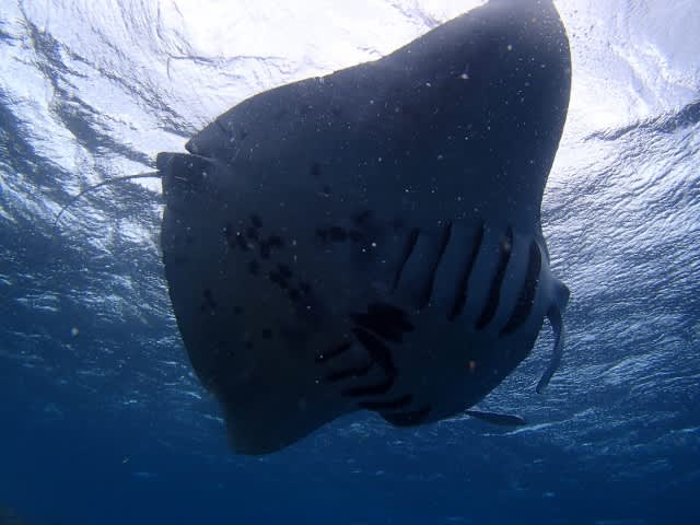 チラ見マンタじゃ皆様納得できない様子でしたので、ラストは水面から