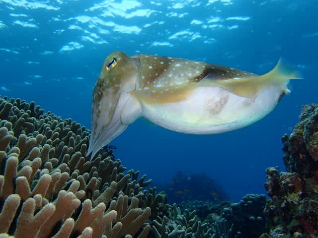 サンゴの綺麗さと 最近見るようになったコブシメちゃんなどなど