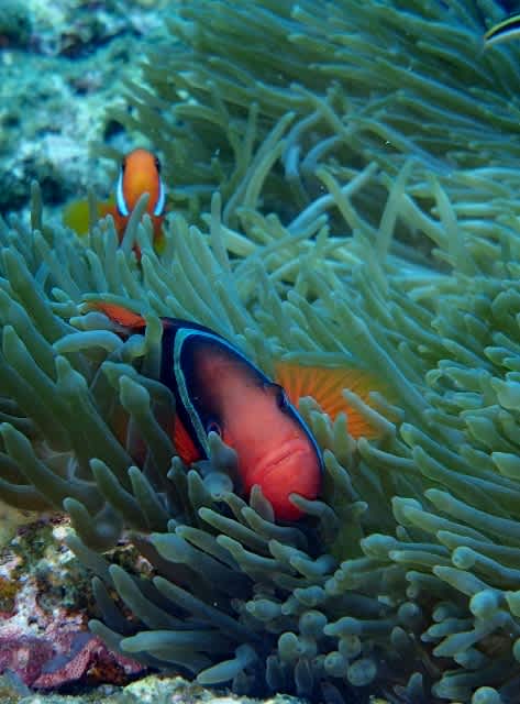 きゃわいいクマノミに 攻撃的なハマクマちゃんと睨めっこ