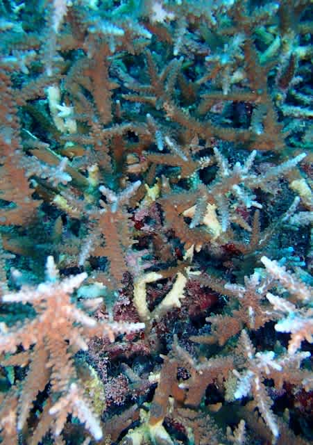 極浅場(1~2m位)の枝サンゴにオニちゃん密集してました