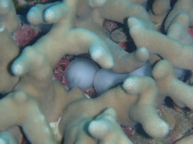 メインのコブシメは1匹しか居ませんでしたが、今日はサンゴ中の卵を