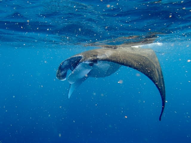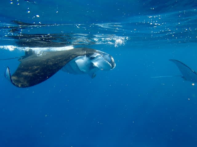 水面をマンタちん達がいっっっっっぱい泳いでますよ(●^o^●)