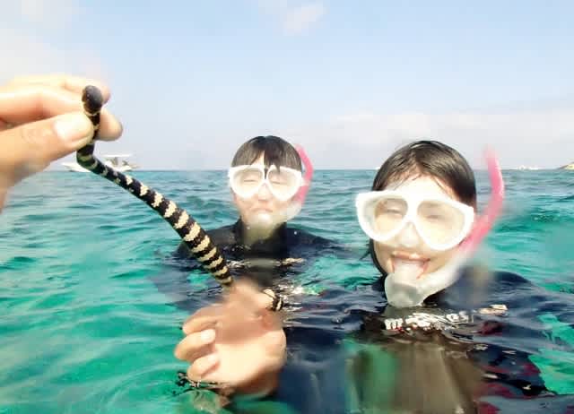 ぽかぽかランチの後も元気にスノーケル&素潜り大会★