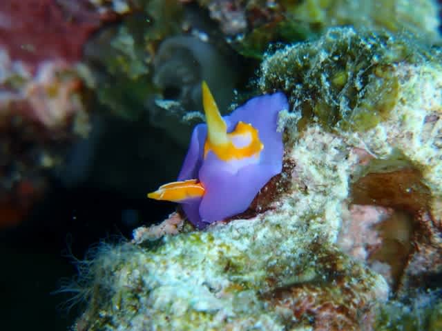 砂地は、なんだか生物豊富で、ヤッコエイにウミウシにエビなど