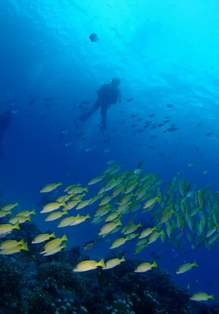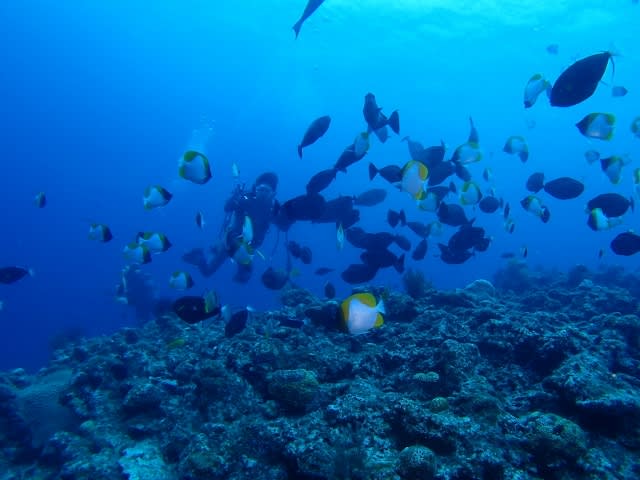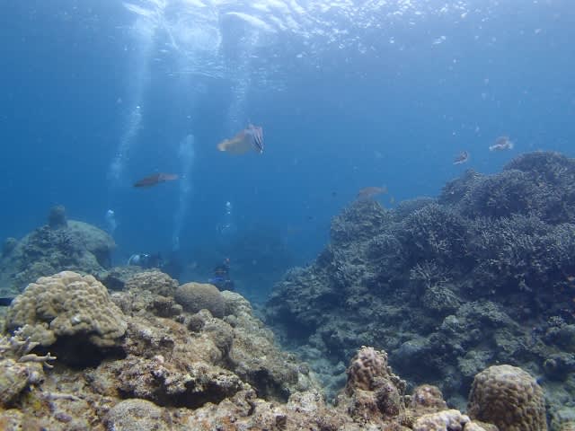マンタ方面は諦めて、透明度がいい竹富周辺で3本潜ってきました。