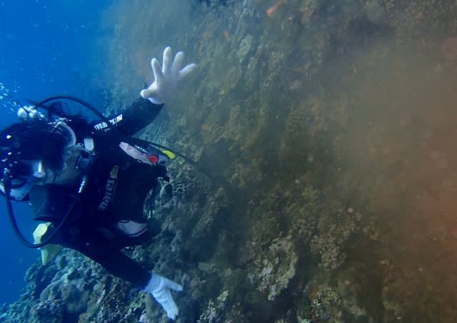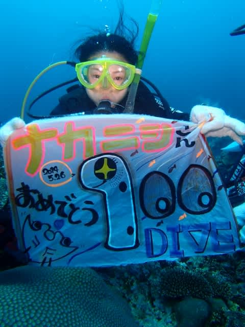 そんな一本目に地元のリピーターのナカニシさん祝100本記念ダイブです