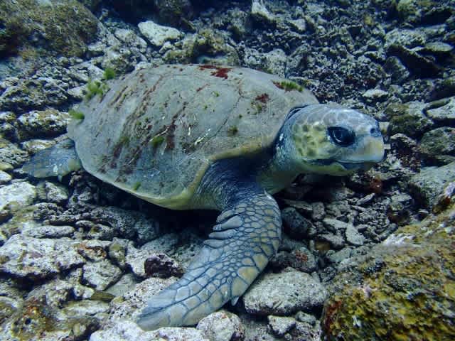 アオウミガメとまさかの浅場でアカウミガメGETです(^O^)/
