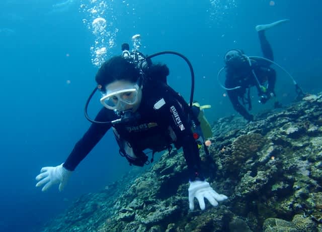 ダイビングの後半は、浅場のサンゴにみんなで癒されて来ましたよ(^_^)