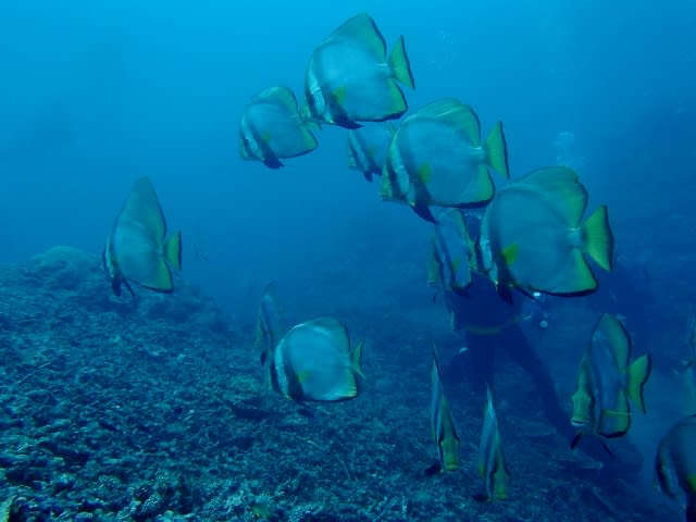 最初のポイントでわさわさのグルクンやスズメダイを眺めてテンション上げたら~~