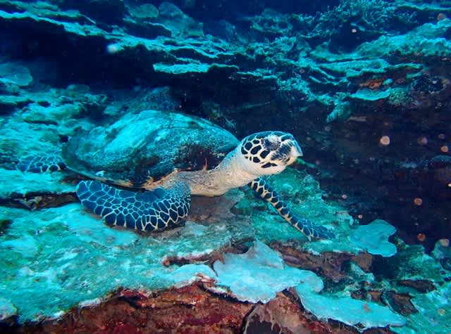 小ぶりですけど甲羅が海藻もじゃもじゃのタイマイが