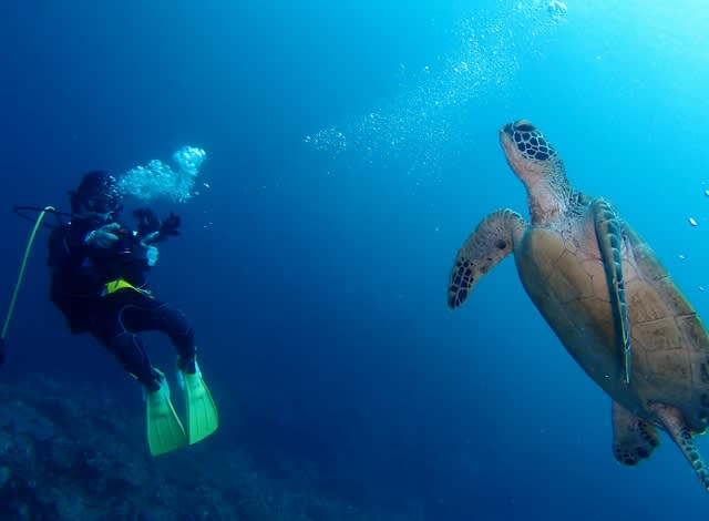 沖の方にはいいサイズのカメさんもいましたよん∈( ゜)◎( ゜)∋