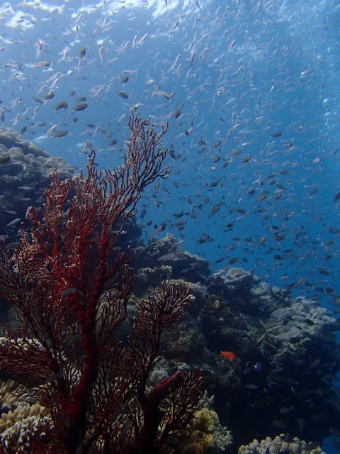ソフトコーラルにお魚がたくさん群れていて綺麗でしたよぉ~