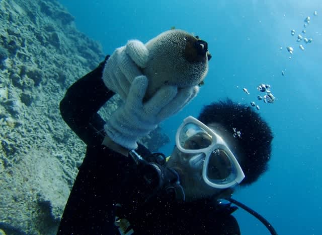 ぶさかわふぐちゃんも捕まえて ニコニコぶくぶくダイビングでした♪゜+.o.+゜♪゜+.o.+゜♪