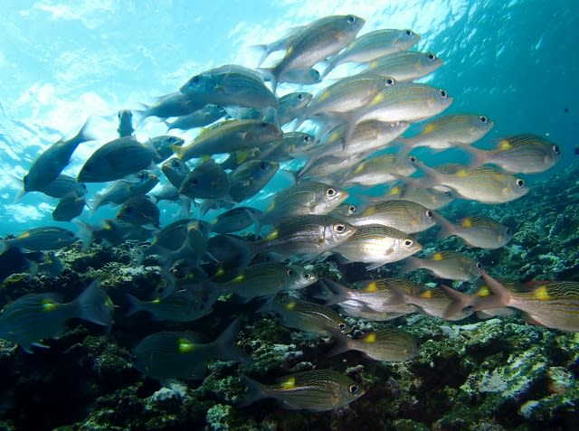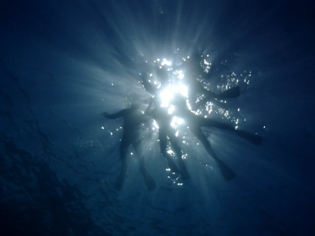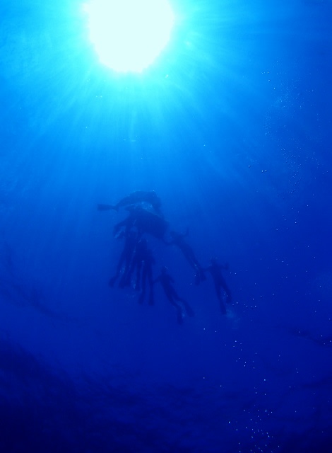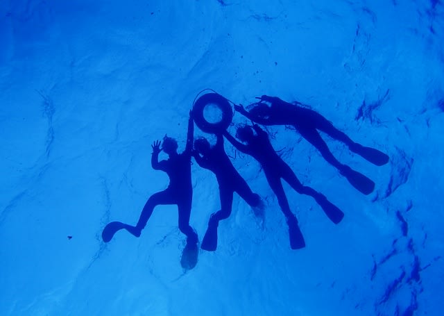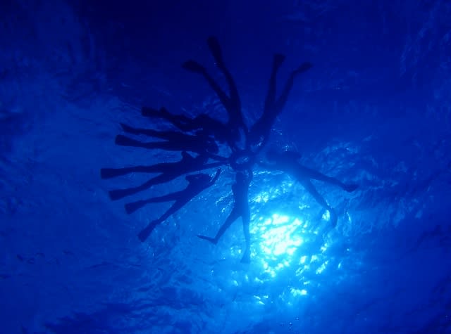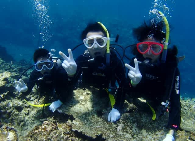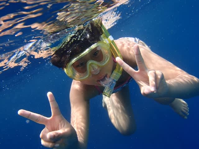 ここは、はい、ただただみんなで青い海とお魚の群れに癒されて