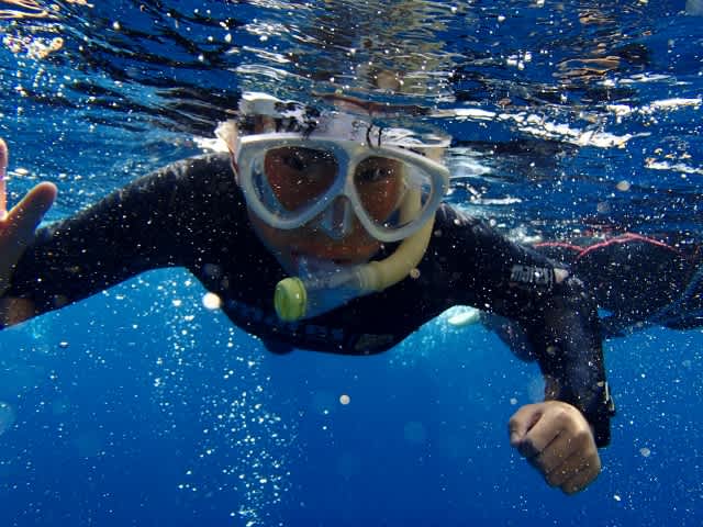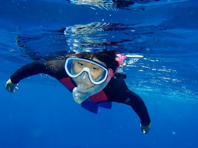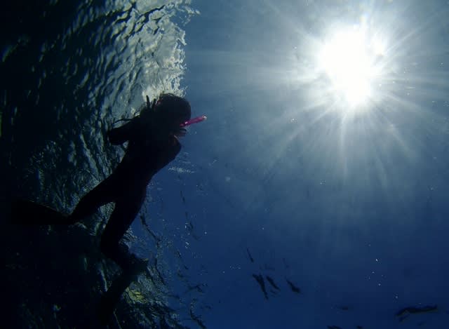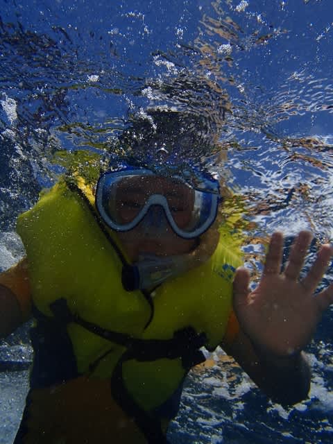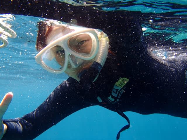 最初はスノーケルから~ 水面近くはチビイカがいっぱいです(^O^)