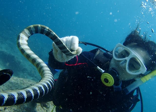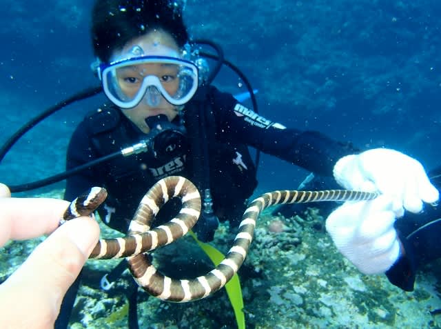 ニョロリと出てきたウミヘビを掴んでみたり\(^^)/