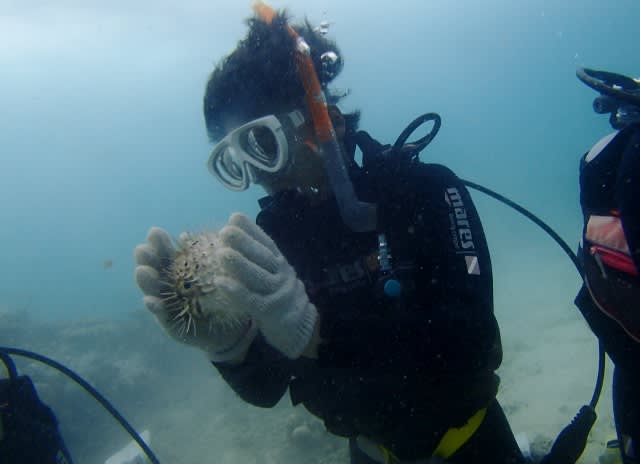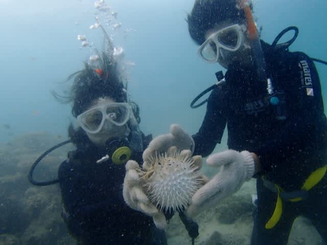 ハマクマノミさんやグロテスクななまこを拾って女性陣は黄色い(?)歓声(´∀`)