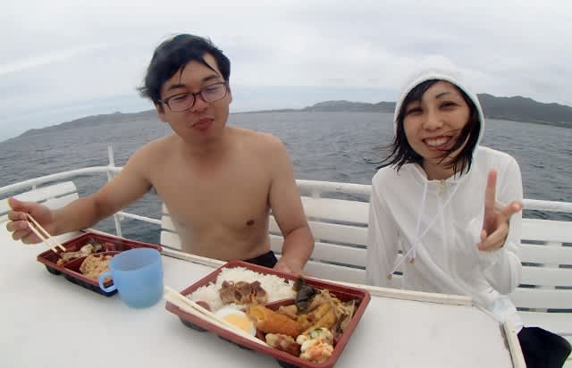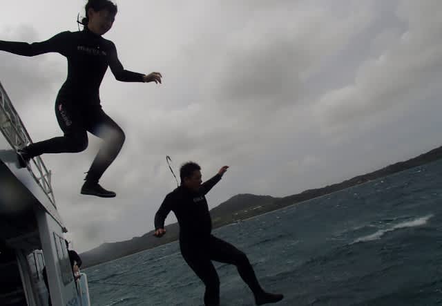 船上にいるあいだは船の2Fからジャンプ大会開催して