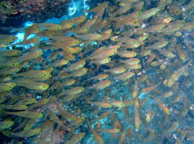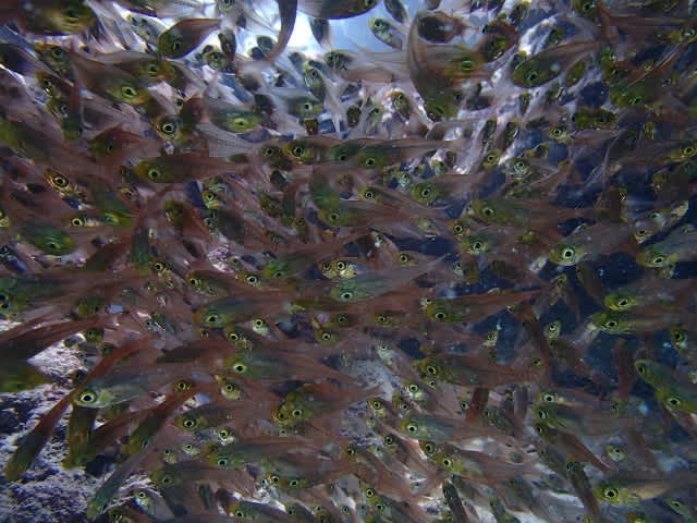 でも!テンジクダイやグルクンの子供達もわさわさ群れてて、