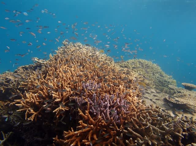 水中はサンゴの群生がどこまでも広がっていてきれいですね~~