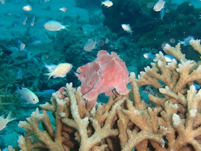 ソフトコーラルの上で遊ぶカエルウオにほっこりしたり??