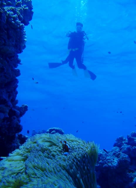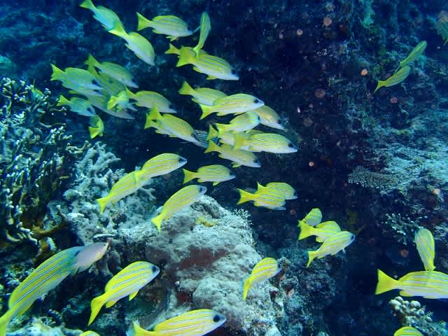 ダイの群れに囲まれて、マクロもチマチマ見ながら、スペシャルブルーの海で